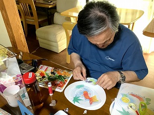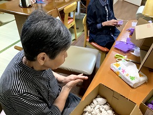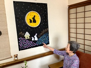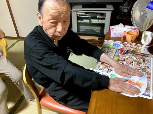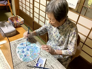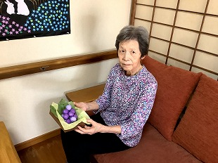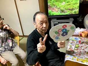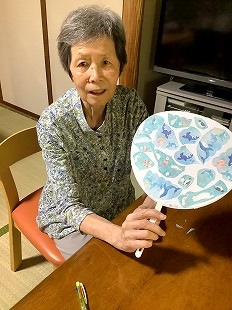 夏から秋の味覚、ブドウを作って頂きました。 団子をつくるように紙を上手く丸めておられました。 また、秋の紅葉を表していただくためそれぞれの感性でフェルトを貼って頂きました。 季節を味わっていただけるよう工夫を凝らしています。 ![]() ![]() ![]() ![]() 2025・8月の思い出 初めてうちわ作りをしてみました。 うちわに貼る用紙を選んでいただき、また周りに色を塗ったりして頂きました。 ご自分の感性で各々仕上げられ、出来上がり後はすぐにあおいでおられました。 ![]() ![]() ![]() ![]() ![]() 2025・7月の思い出 短冊に願いごとを書かれ、七夕飾りも一緒に竹笹につけて頂きました。 また、まめな家玄関には作品展として入居様が作成された作品を飾っています。 季節を感じて頂けるよう取り組んでおります。 ![]() ![]() ![]() ![]() ![]() 2025・6月の思い出 まめな家では2か月に1回、訪問理美容さんに来ていただいてます。 皆さんいつも待ち遠しく待っておられます。 ![]() 2025・5月の思い出 壁紙を作成していただいている様子です。