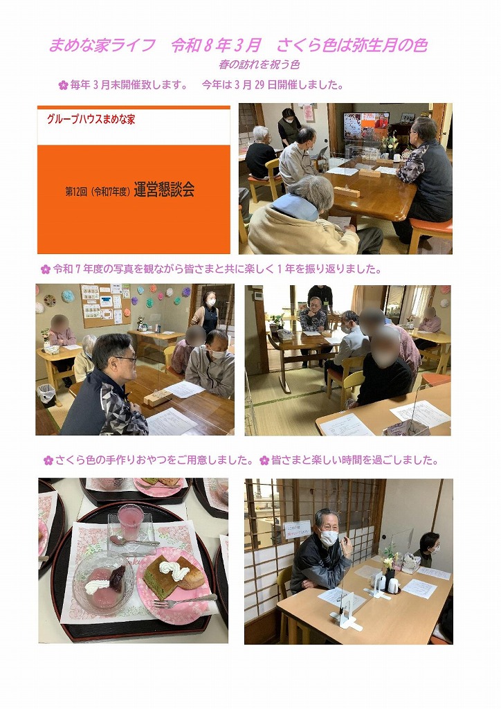 ニュース・日常の様子施設のニュースや日常の様子などを掲載しています。 グループハウスまめな家