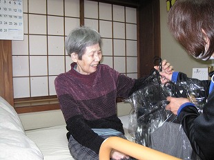![]() 「寒くなりましたね。」と言われることが多くなりました。 ご本人様と確認しながら、少しずつ衣替えを行いました。 一休みのひととき、テレビを観ながら、リラックスした気分で会話にも笑顔が見られます。 ![]() 入浴を楽しみにしておられます。体調を崩され、久しぶりの入浴になりました。 「風呂に入れて良かった。気持ちいい」と喜んでおられました。 水分補給をしていただき、落ち着いてから居室に戻って頂きました。 ![]() 新しく入居され、生活用品で足りない物の購入依頼がありました。 購入後、品物と値段を一緒に確認して頂き、お渡しすると 「ありがとうございます。」と喜んでおられました。 洗濯機を一緒に回し、物干しの介助を行いました。 2025・9月の思い出